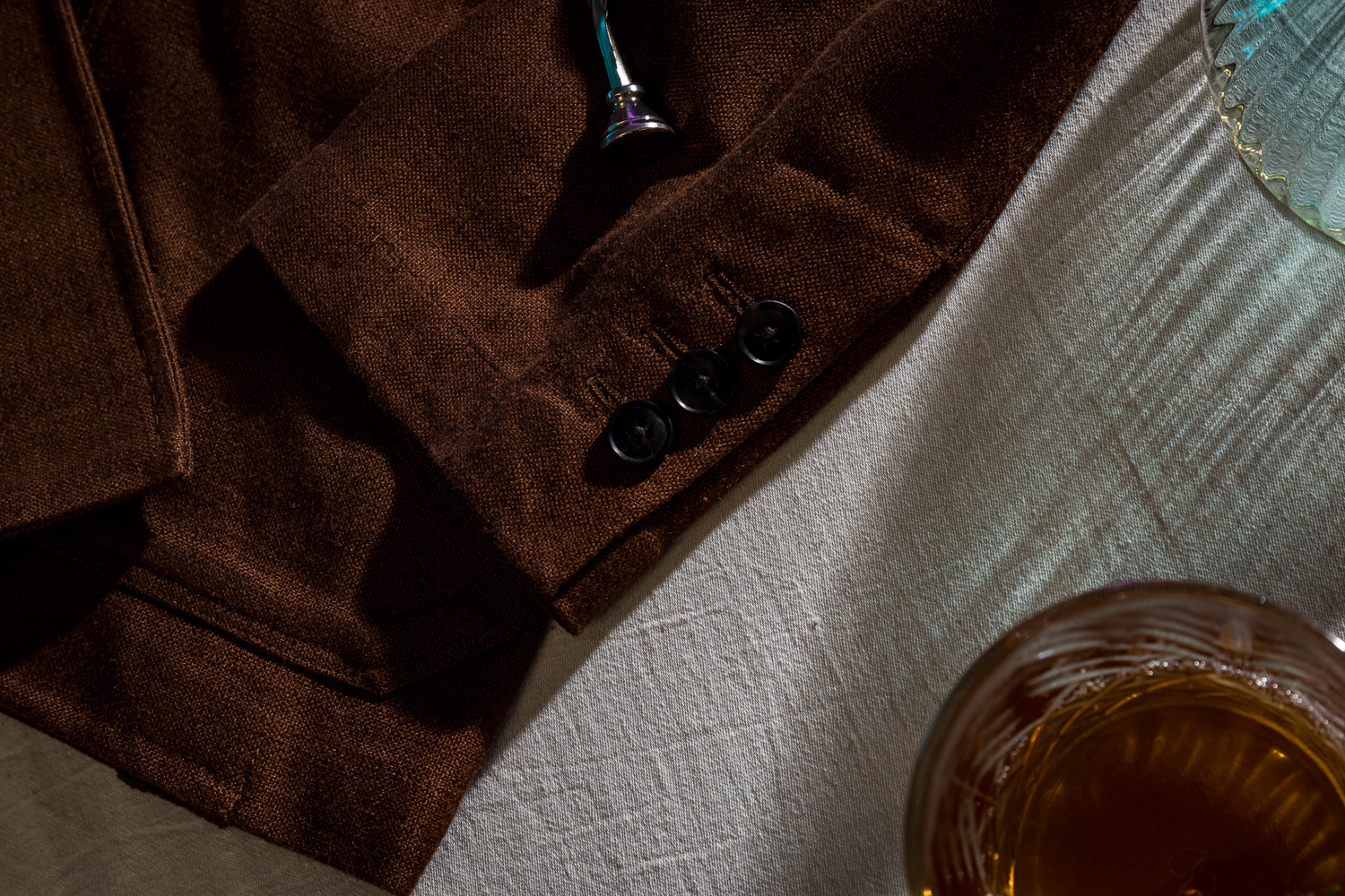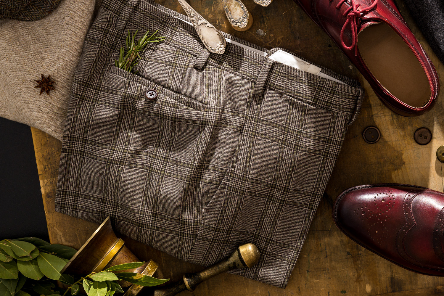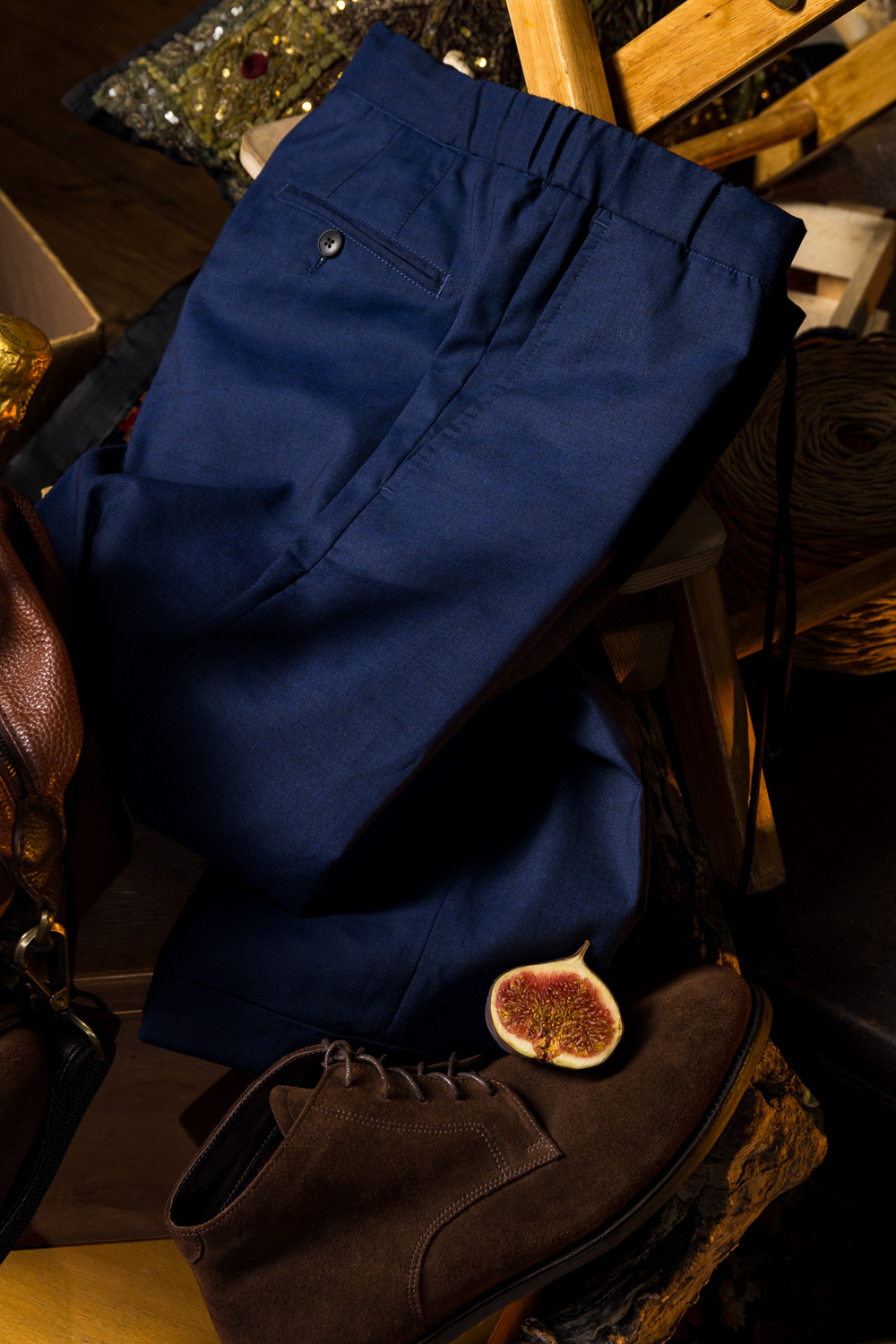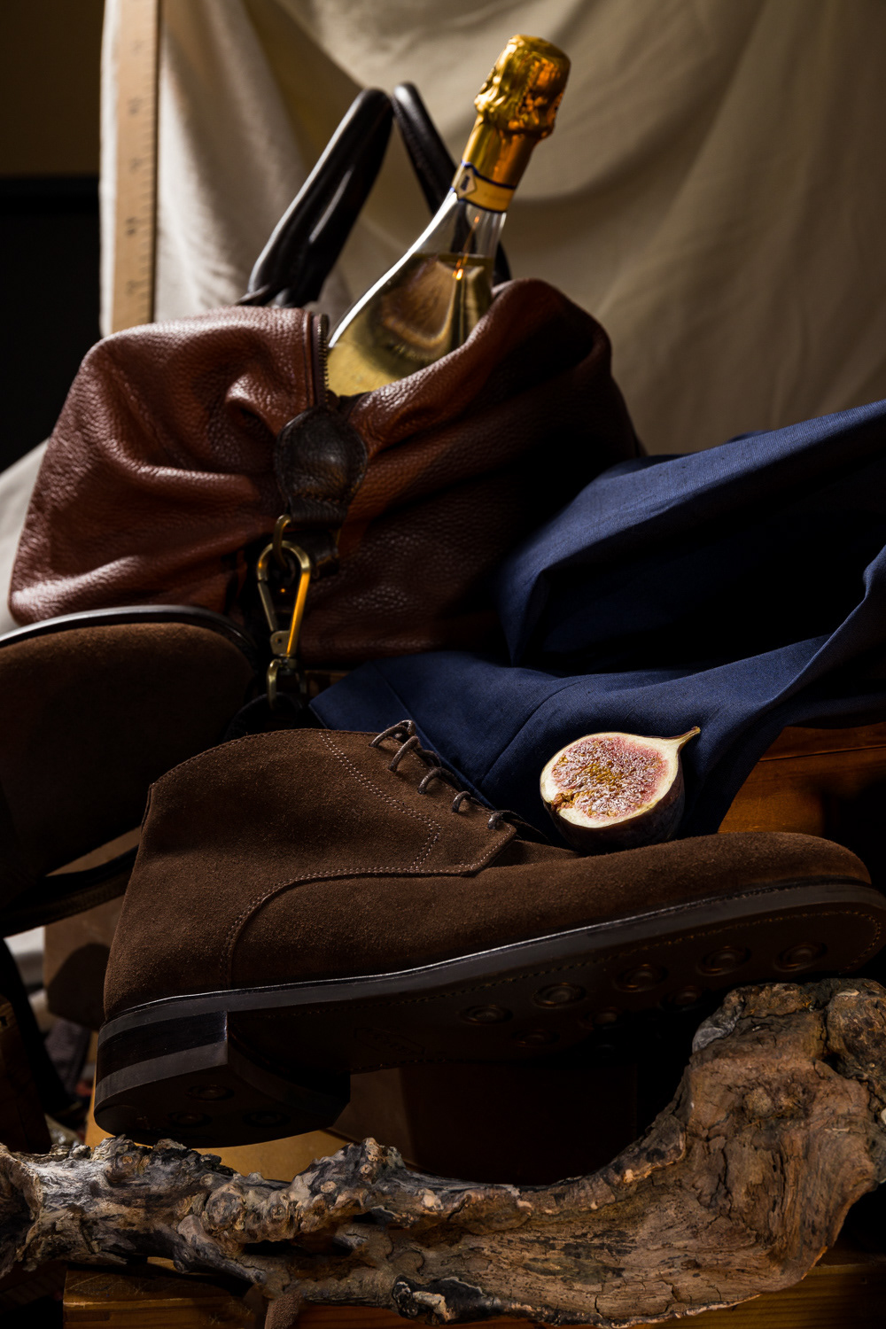 1. An Outfit as a Work of Art. Suit details framed by an artistic still life and picture frame.