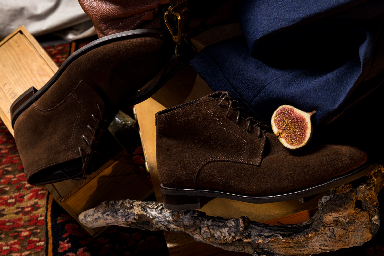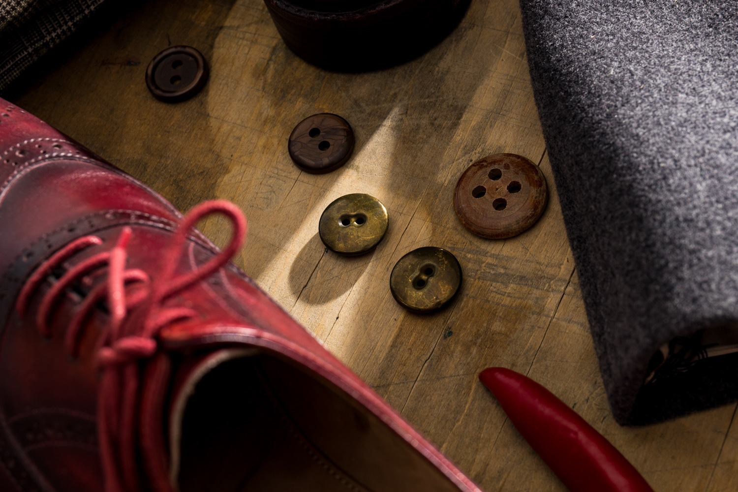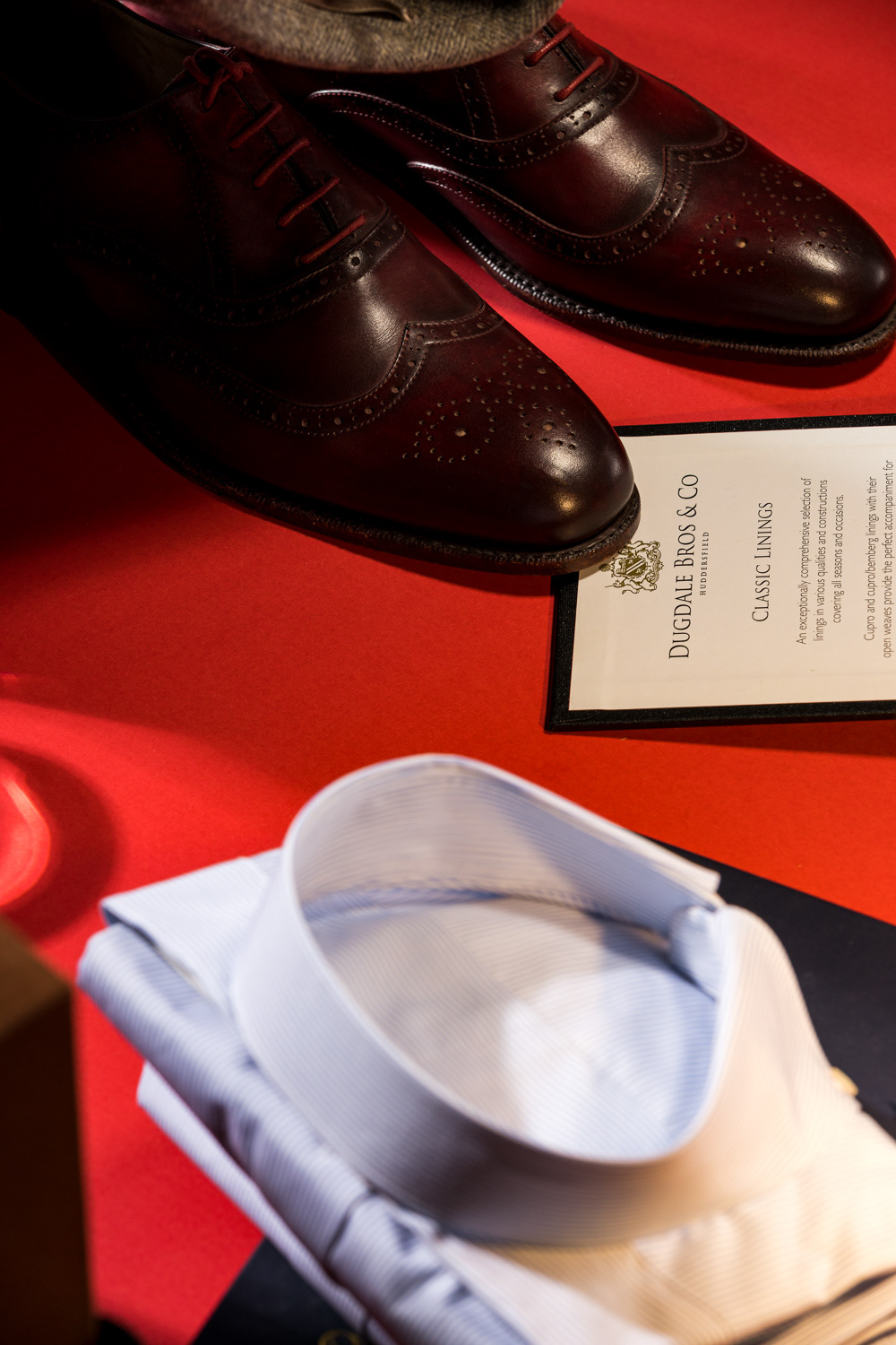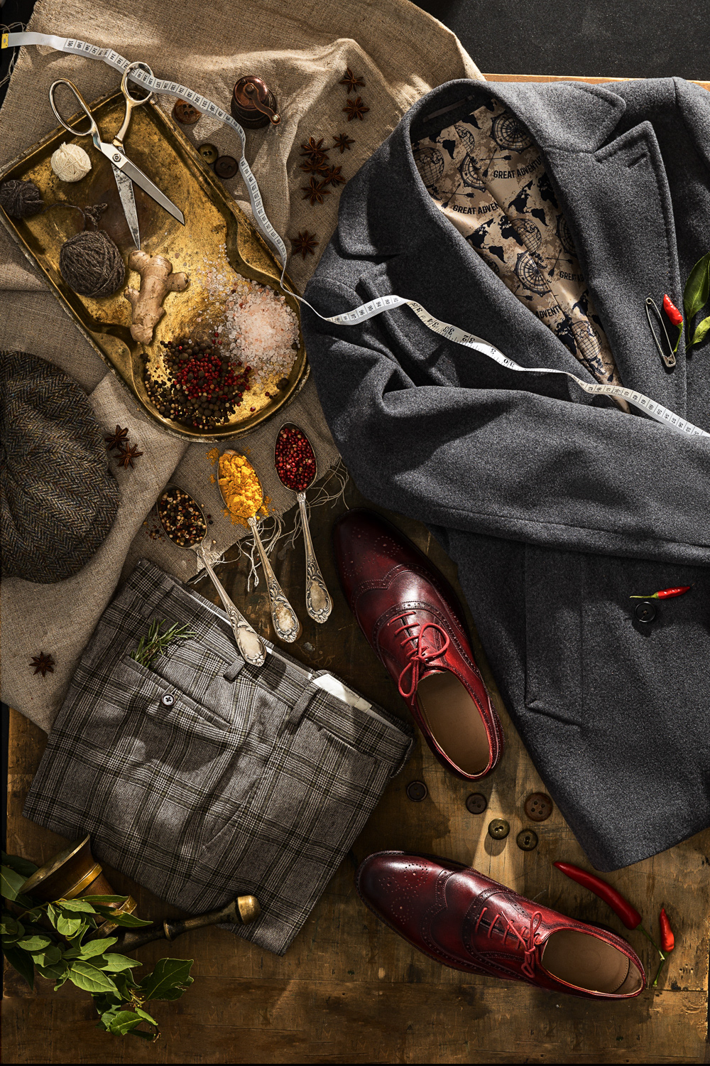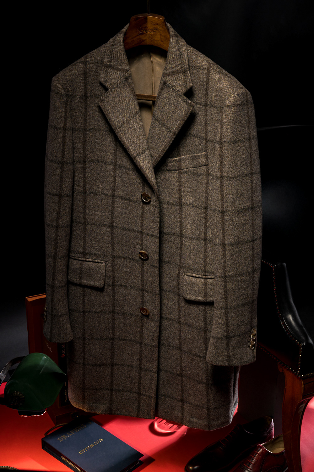 1. An Outfit as a Work of Art. Suit details framed by an artistic still life and picture frame.