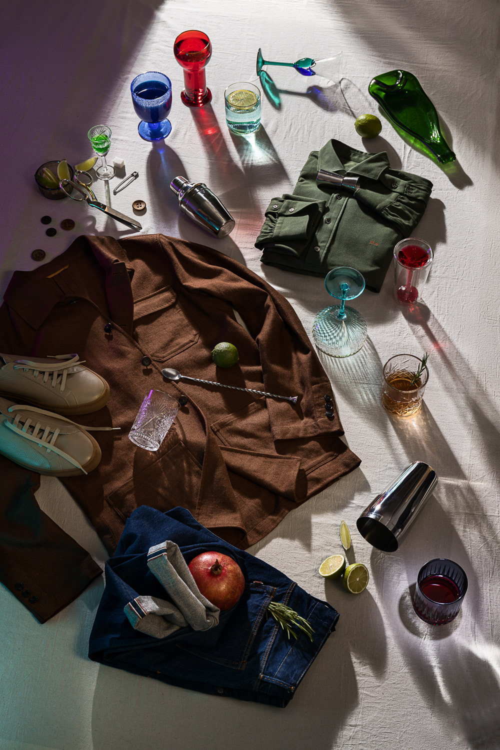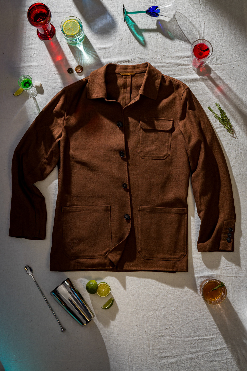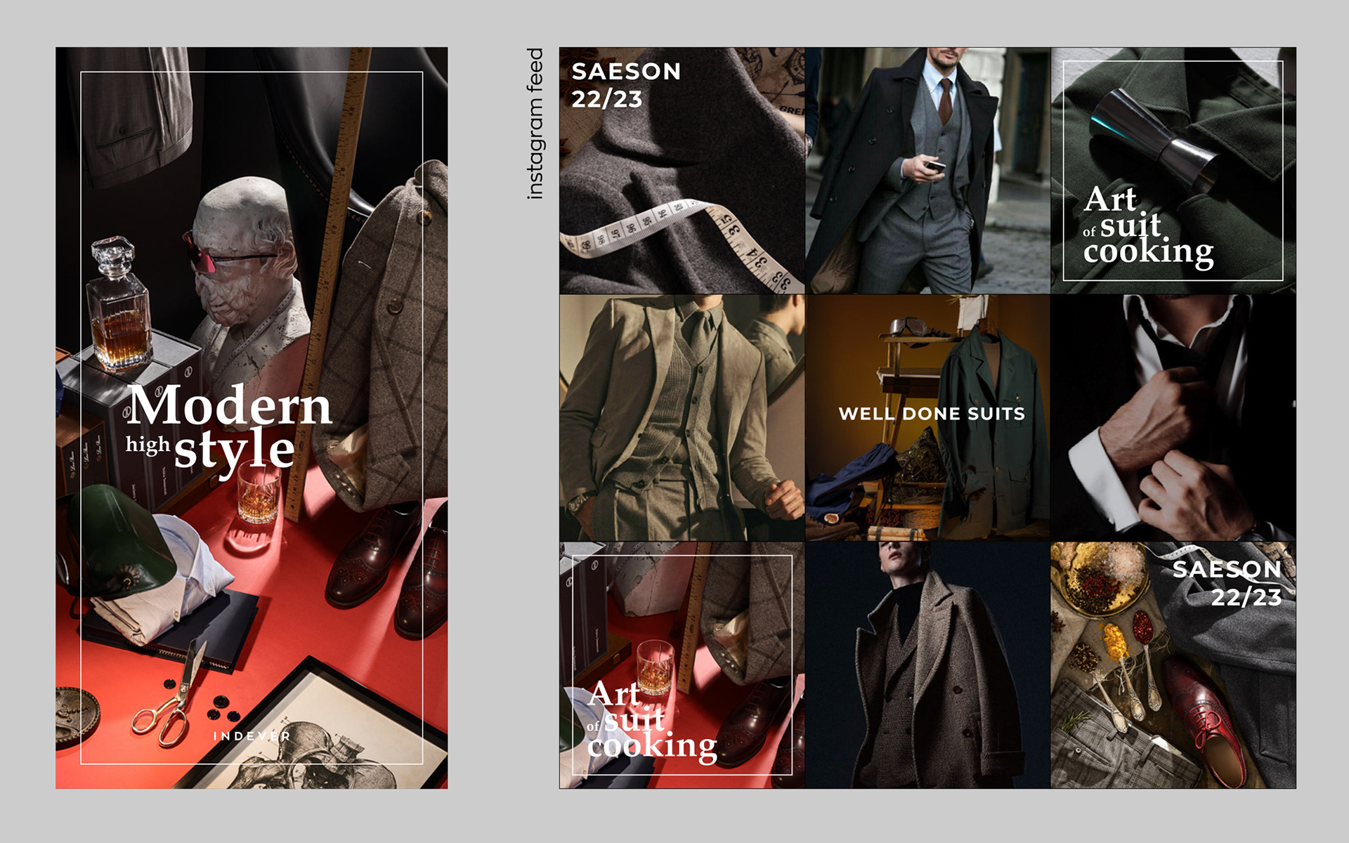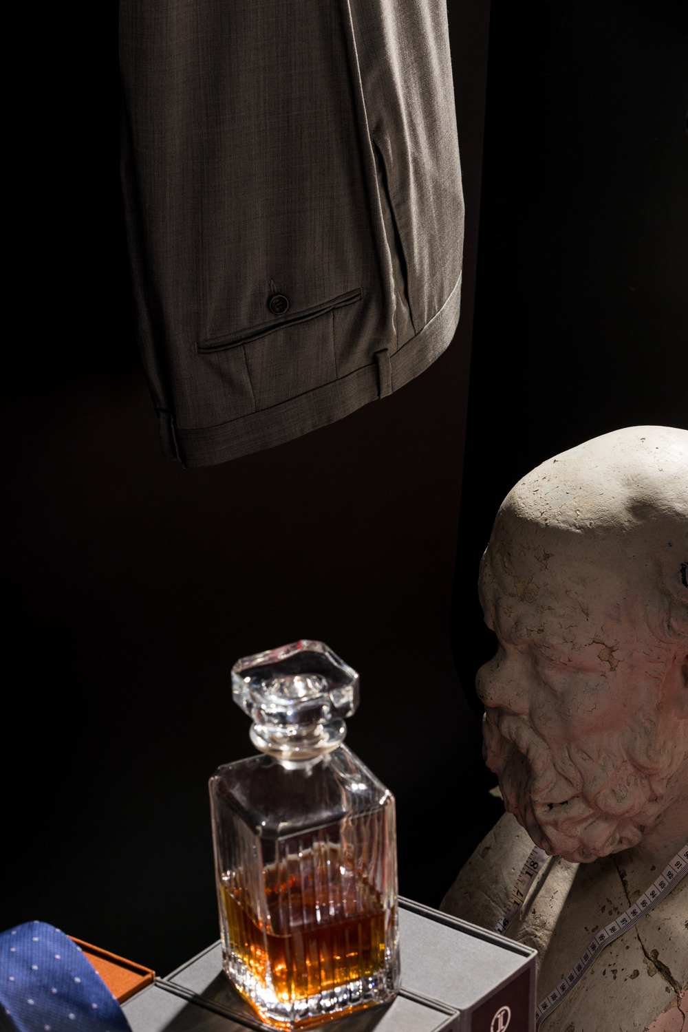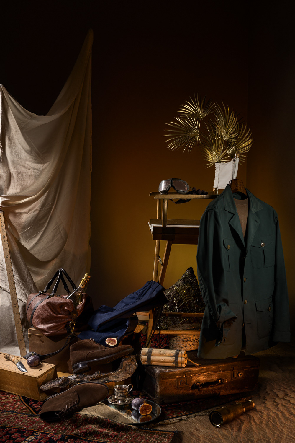 The concept for the campaign was developed in collaboration with the art director and set designer. We drew inspiration from the aesthetics of classic Dutch still life, reimagined with a modern twist. The goal was to convey mood and highlight the unique details of each suit through the photographs.